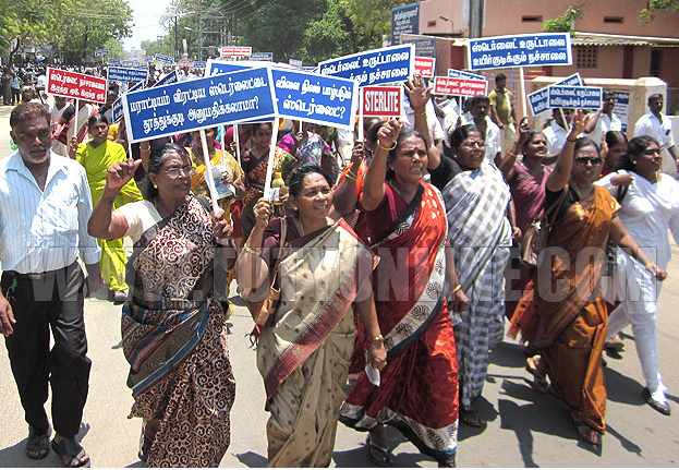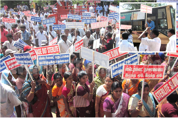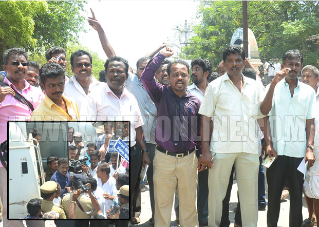 Reports from Thoothkudi claim that more than 5000 people from more than 71 named organisations attended today’s rally, some arriving in bus loads. They included fishers unions, taxi and auto drivers, women’s groups and political parties. Police quickly arrived with buses to arrest the protesters but were forced back to Thenpaakkam police station as protesters shouted ‘It’s the police that supports Sterlite!’, ‘Police return immediately’ and ‘If the buses aren’t moved they’ll be smashed!’. The police also tried to prevent TV channels from telecasting the rally by pulling out their wires and arguments ensued between a a number of press and the police.