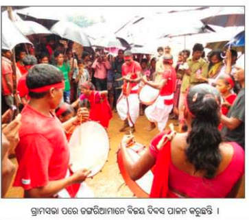 When the Palli Sabha was over, Dongria and Kutia Konds from surrounding villages celebrated the victory of their decade old agitation against mining, and the unanimous resolution against the mine of every attending voter in twelve villages in Niyamgiri, by dancing with traditional musical instruments.