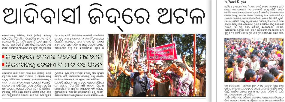 Coverage of the Lanjigarh demo in the Odiya newspapers: