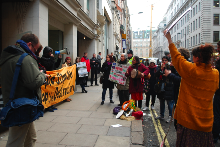 A loud group of protesters from Foil Vedanta and other grassroots groups mobbed the company’s Mayfair headquarters today holding a banner reading ‘FCA: de-list Vedanta’. The demonstration called for the Financial Conduct Authority to remove Vedanta from the London Stock Exchange for poor corporate governance and human rights crimes.