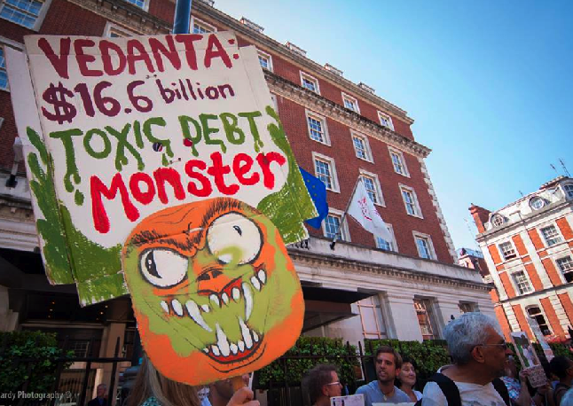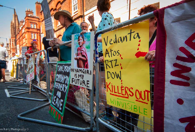Inside the AGM dissident shareholders disrupted the meeting by asking questions on Vedanta’s environmental and human rights record. The protests highlighted controversies and violations caused by Vedanta since their last AGM, including: